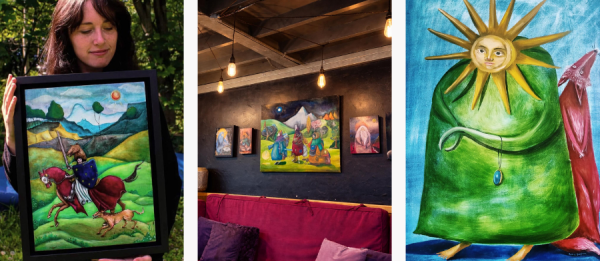 Her exhibition pieces are windows into her post-apocalyptic dreams. She has a deep fascination with a world that remains after human civilisation has fallen, where strange beings and mischievous characters roam a vast landscape.
